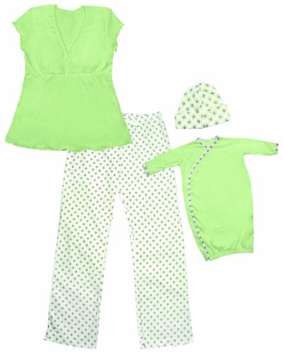535051-595-44 Size: Large/Extra Large, Color: Green Features: -Material: Lightweight cotton jersey.-Baby gown has lap shoulder for easy on-and-off.-Pants have drawstring waist.-Nursing top has built-in bra support with easy and discreet breastfeeding access.