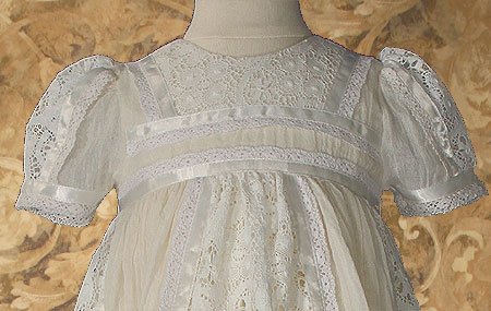 Wow!! The dress looks beautiful from the pictures, but in person, it is absolutely stunning!! I love its antique look and the delicacy of the gauze and lace fabrics. I especially love that it's 100% cotton, so it will hold up well to pass down to future generations. I couldn't be happier with this gorgeous gown, and everyone who has seen it agrees.