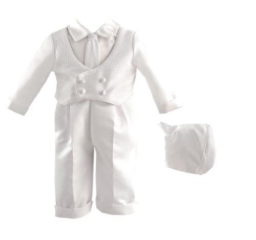 What do you think about Lauren Madison baby boy Christening Baptism Special occasion Infant Double Breasted Diamond Pattern Knit Vest With Pleated Satin Pant, White, 9-12 Months?