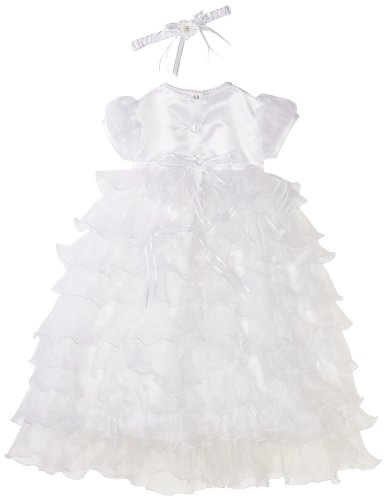 Lauren Madison baby girl Christening Baptism Special occasion Newborn Multi Tiered Organza dress gown With Satin Bodice, White, 6-9 Months Features