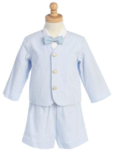 What do you think about Made in USA-Lito Eton Seersucker Suit w/Jacket, Shorts, Shirt, Bowtie-White w/Blue Stripes Large (12-18M)?