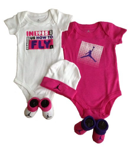 What do you think about Nike Jordan Infant Boy & Girl 2 Shoulder Bodysuit, 2 Booties and 1 Cap 0-6 Months White/Red/Grey/Purple with "Jumpman" Sign 5 Piece Set New?
